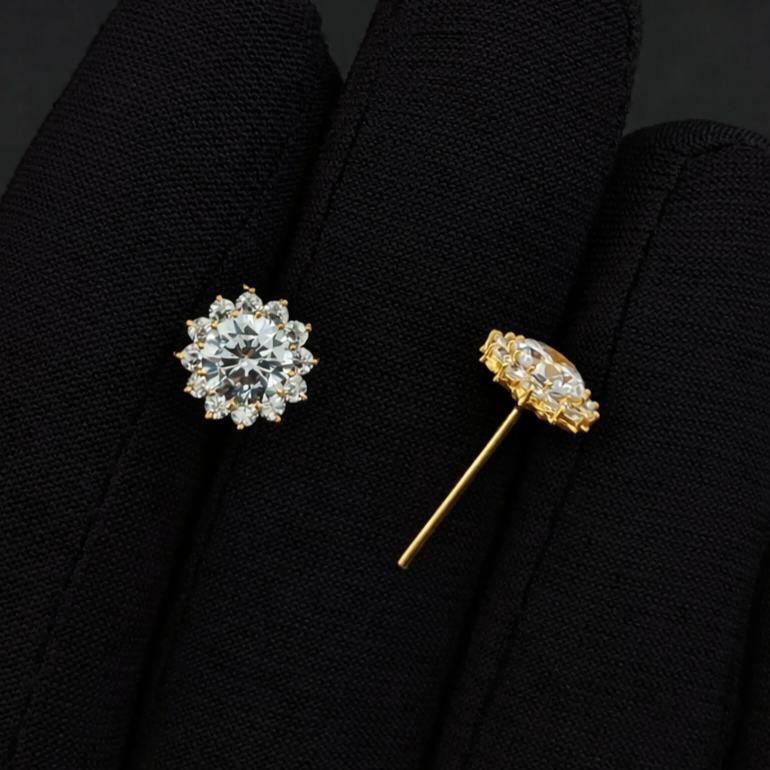 (২টি) 13 Stone Nosepin or Ear Tops Diamond Cut 18k Gold Plated