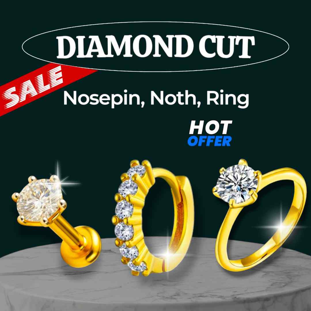 Noth+1 Diamond Cut 18k Gold Plated Nosepin & Golden Ring Combo